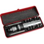 外し損ねたネジを外すショックドライバー 特長:硬いネジ、さび付いて固着してしまったネジや外し損ねたネジを外す時に便利なショックドライバー。ドライバー本体の上部をハンマーで叩くと同時に先端が回転しネジを徐々に緩み取り外しができます!<br>仕様:生産国:台湾<br>セット内容/付属品:プラスビットNO.1/2/3マイナスビット8mmトルクスビットT40/T45ヘックスビッ・・・