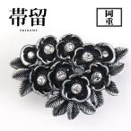 岡重 ブランド 高級帯留 スズ製 スワロフスキー 花 椿 シルバー 銀 結婚式 卒業式 成人式 留袖 着物 化粧箱入