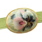 帯留め 帯止め 着物 楕円型 薄緑地 カトレア薔薇