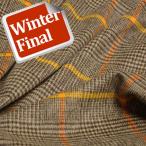 日本製 ウールポリエステル シャギーフラノ 片側起毛 ビッググレンチェック ブラウン&山吹オレンジ B[オーダーカット生地 10cm単位]